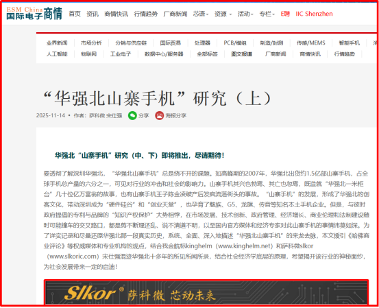 《“华强北山寨手机”研究(上)》及其英译版反响热烈!该文(中、下)即将推出(公海555000JC线路检测中心11月21日芯闻)