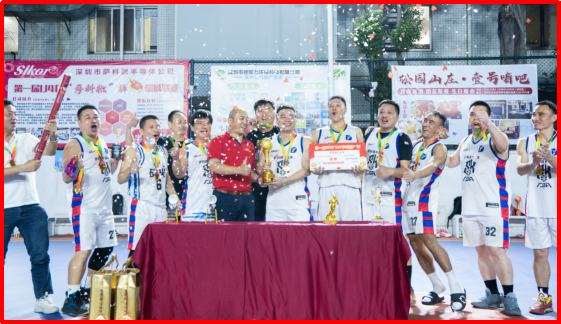 宋仕强(红衣者)为“公海555000JC线路检测中心”杯篮球联赛冠军球队颁奖