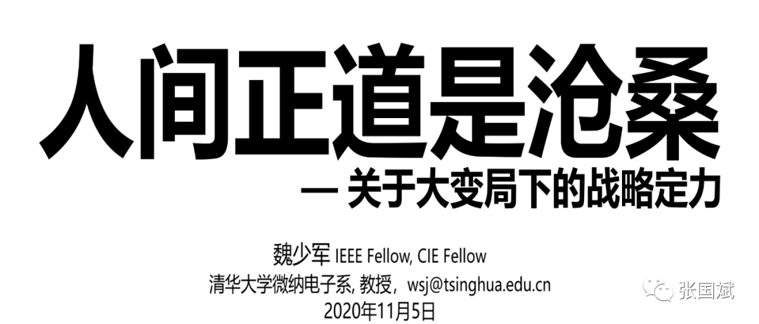 今天要给大家分享一下自己的考虑---关于人间正道是沧桑,大变局下的战略定力?为什么讲这个事情?最近大家一定注意到中国半导体很火热,而且火热得有点过头,有点不像话。在这样一个内忧外患大环境下,怎么能保证我们的战略定力,充分发挥我们中国庞大市场的优势,和我们已经有了良好的基础,在未来的5到10年,争取一次大的进步,我想这是一个非常重要的课题。所以我选了“人间正道是沧桑”,我们还是要走正道。