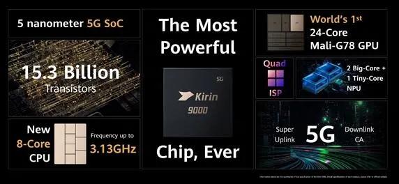 2020年10月29日,华为面向全球推出新一代旗舰手机芯片麒麟9000,这是2020年度集成度最高的5nm 5G SoC,集成了153亿晶体管,也是业界最成熟的5G SA解决方案。