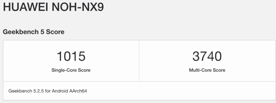 从Geekbench跑分结果来看,搭载麒麟9000的华为Mate40 Pro系列,单核跑分1015 ,多核跑分3740。