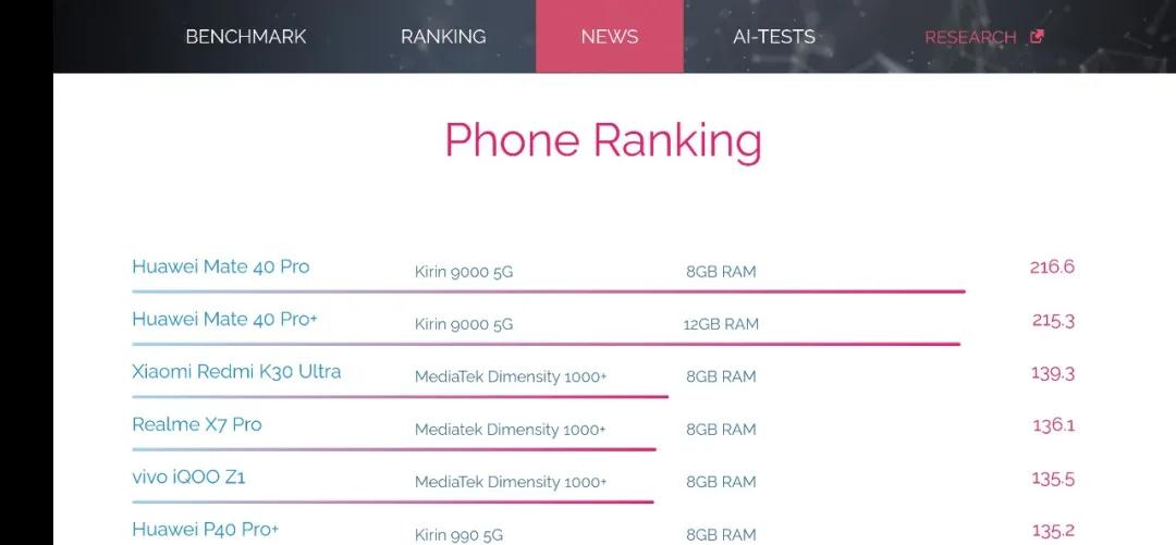 在11月手机排行中位列第一!注意,霸榜的前三都是华为Mate40系列,可见麒麟9000的战力!