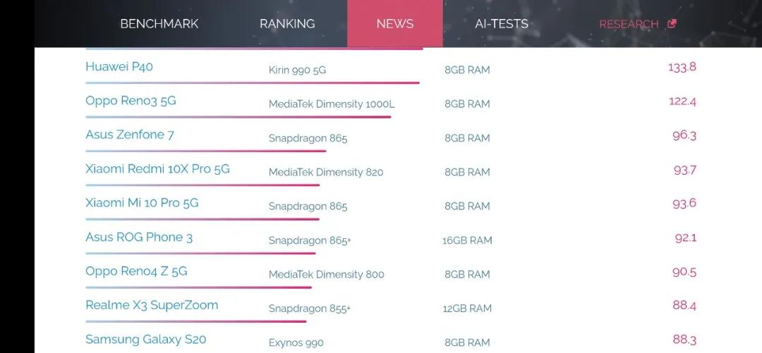 同时能效提升了15%,网络运行性能提升20%。从苏黎世理工学院AI Benchmark公布的主流手机和芯片AI综合评测榜单看,搭载麒麟9000的华为Mate40 Pro夺得第一,远超越骁龙865+和其他芯片,AI实力遥遥领先。