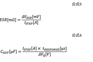 同样,如果已指定输出端的电压纹波最大峰峰值,则分别通过公式3和公式4即可确定大容量电容器的电容和ESR: