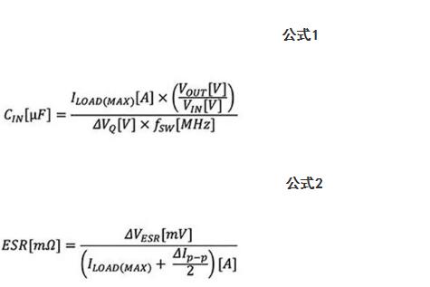 借助基于关键公式的一些成熟技术是不错的切入点。输入电压纹波包括ΔVQ(由输入电容器放电产生)和ΔVESR(由输入电容器的等效串联电阻 (ESR) 产生)。如果已指定输入端的电压纹波最大峰峰值,分别通过公式1和公式2即可估算大容量电容器的所需输入电容 (CIN)和ESR: