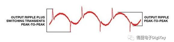 图1:开关稳压器的输出电压纹波波形图显示了瞬态尖峰是EMI的主要来源。(图片来源:Analog Devices)