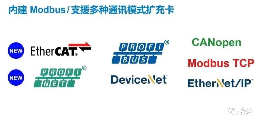 C2000原本就支持CANopen 、Modbus TCP、EtherNET/IP、DeviceNET、PROFIBUS等通讯协议,而C2000+更是增加了EtherCAT、PROFINET,让数据传输与控制更加便捷高效,与物联网系统的配合更为密切。