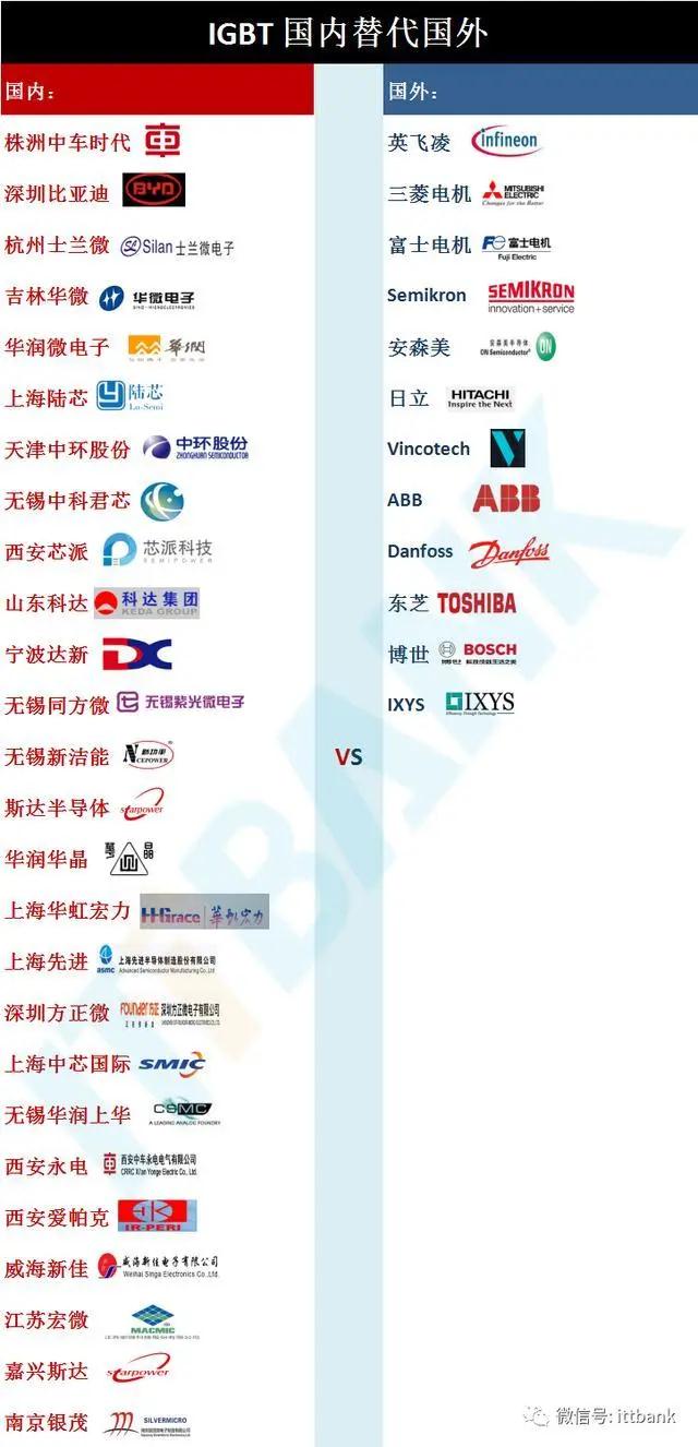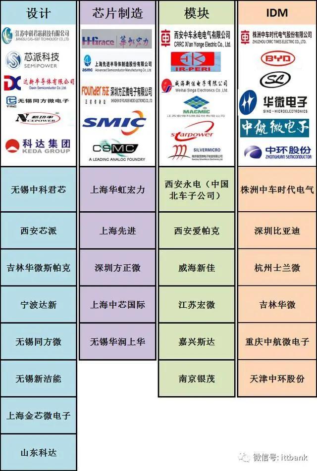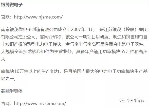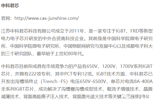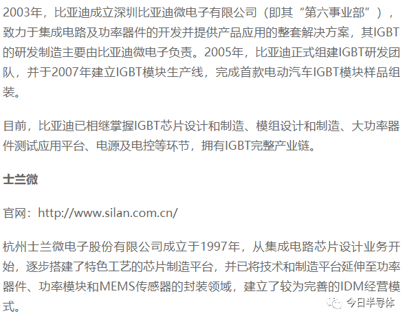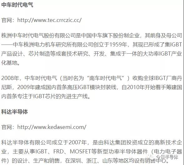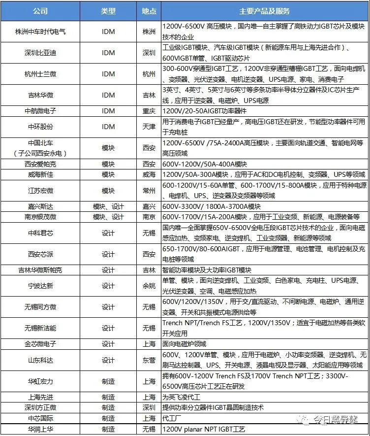 国内IGBT产业链主要公司及主要产品