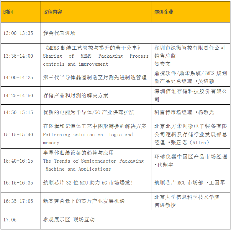 大会邀请了航顺、佰维、恩智浦、华润微、华星光电、和辉光电、维达力、北方华创微、鼎力、维力谷、德瑞精工等众多行业代表将围绕封装、Mini LED、Micro LED、芯片、第三代半导体、工业互联的数字化等智能制造和材料的工艺探讨.欢迎报名参加!