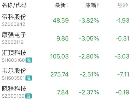 半导体最大跌幅TOP5