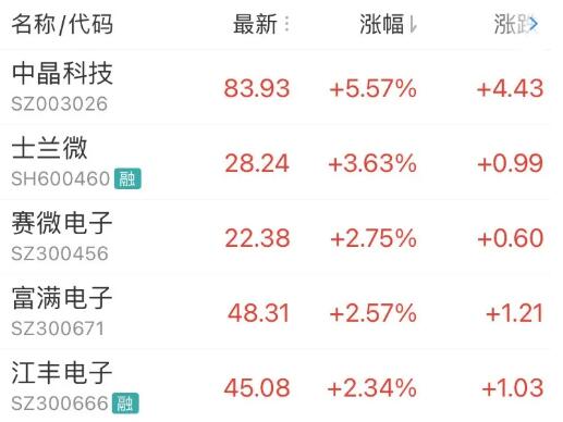 半导体最大涨幅TOP5