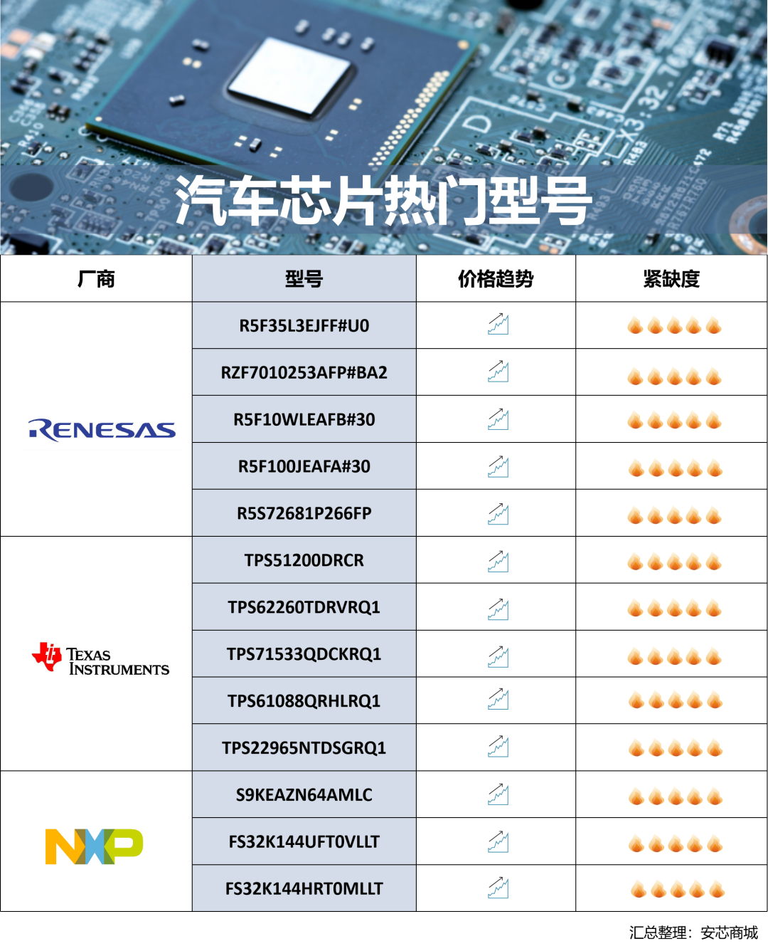 附表1:近期汽车芯片热门型号