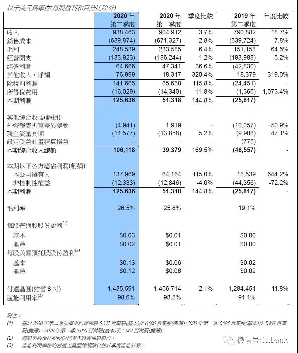 中芯国际发布了2020年第二季度财报,截至2020年6月30日,营收达9.38亿美元(约65.28亿人民币),环比增长4%,同比增长19%;毛利2.49亿美元,环比增加6.4%,同比增加64.5%。