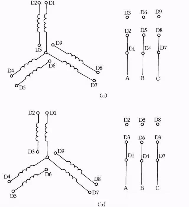 图8所示是2Y/2Y电动机双速定子线组的引出线接线方法。