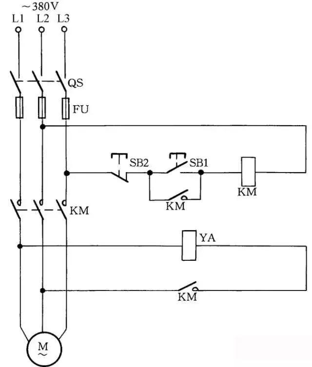 线路中YA为制动电磁铁,在通电后,制动解除;在断电后,YA立即制动。