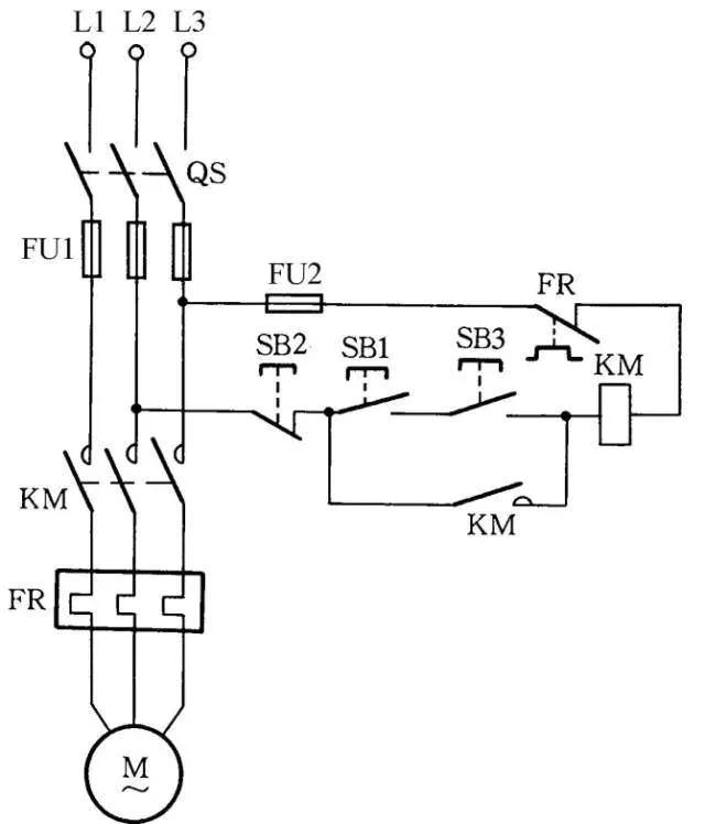图中SB2为停止按钮,在停止时,按动SB2的时间要长一点。否则,手松开按钮后,接触器又吸合,使电动机继续运行。这是因为电源电压虽被切断,但由于惯性的作用,电动机转子仍然转动,其定子绕组会产生感应电动势,一旦停止按钮很快复位,感应电动势直接加在接触器线圈上,使其再次吸合,电动机继续运转。