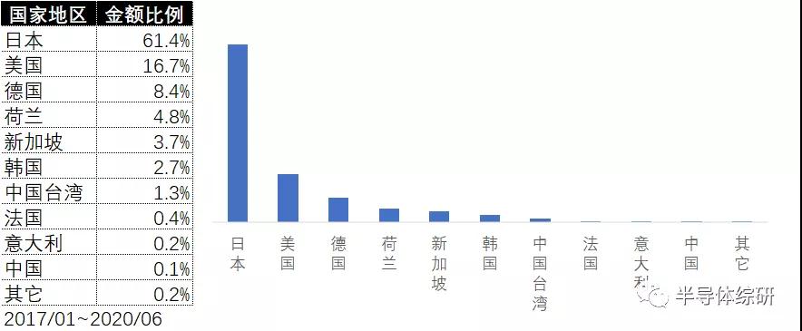 从下面比例图上可见,中国大陆进口的氧化扩散等热处理设备,有超过6成来自日本
