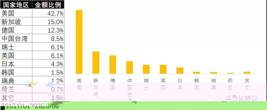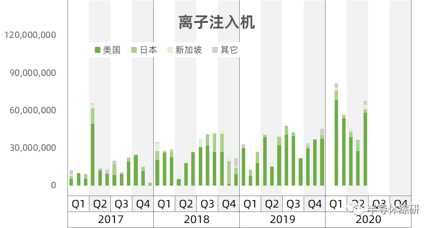 离子注入设备的进口量相对其它主要设备偏少,同期只有12.7亿美金,但是作为半导体和IC制造不可或缺的重要设备,其进口来源单一,主要被美国一家垄断。这对于我国半导体产业的供应链安全而言是一个比较大的隐患