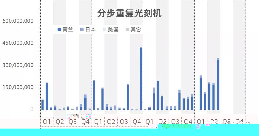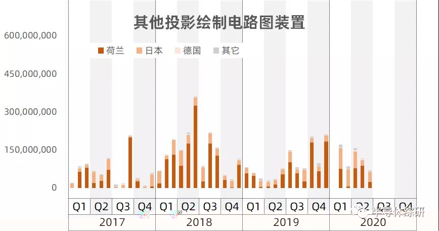 其它的光刻设备的进口量在近几年内整体变化不大。进口来源地也主要来自荷兰和日本,但日本的份额相对略有增加