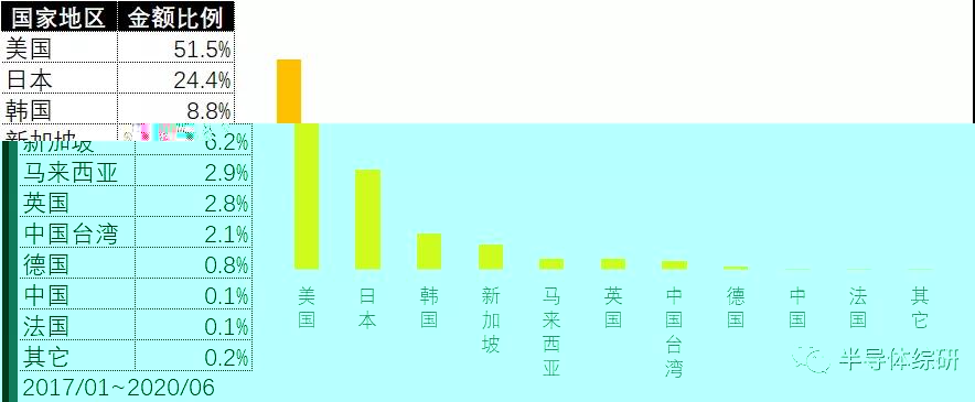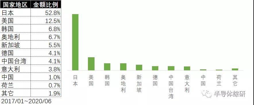 来源地上,主要是日本和韩国。日本有世界湿法设备排名第一的供应商DNS,而韩国应该主要是SEMES
