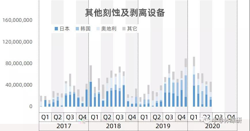 其它刻蚀设备应该主要以湿法为主。其进口量在2018年上半年和2019下半年各有一个小高潮
