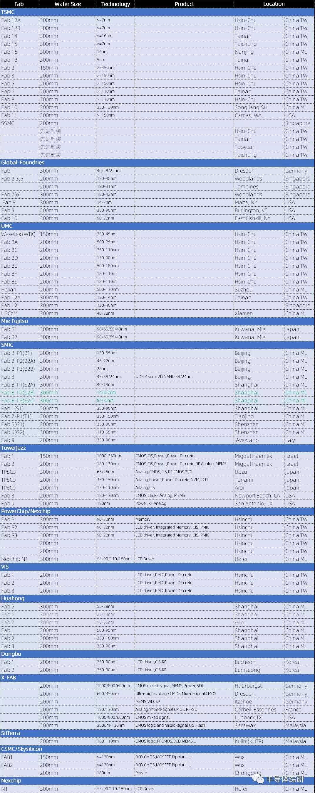 我上个月发布了球主要晶圆厂分布统计数据的第一版,得到不少行业内同仁的指点和建议。所以这次我根据大家的反馈,对数据进行了修改和整理。